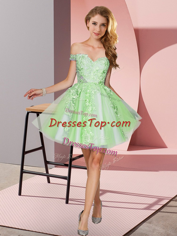 Mini Length Zipper Damas Dress Apple Green for Prom and Party and Wedding Party with Appliques