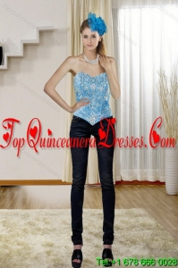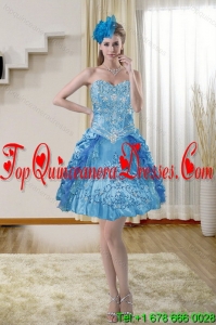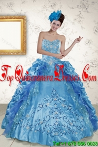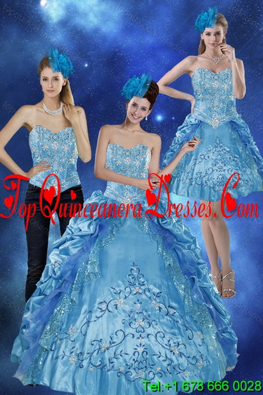 Modern 2015 Sweetheart Teal Quinceanera Gown with Embroidery and Pick Ups