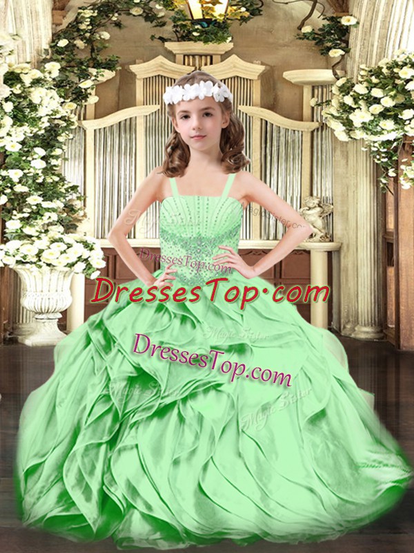 Modern Beading and Ruffles Little Girls Pageant Dress Wholesale Green Lace Up Sleeveless Floor Length