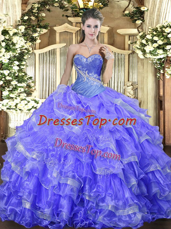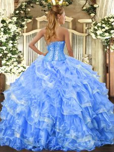 Modern Blue Organza Lace Up 15 Quinceanera Dress Sleeveless Floor Length Beading and Ruffled Layers