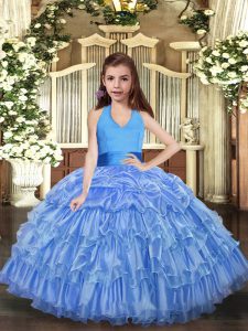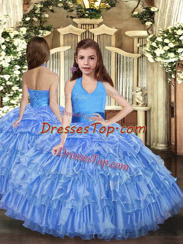 Modern Blue Sleeveless Organza Lace Up Pageant Gowns For Girls for Party and Wedding Party