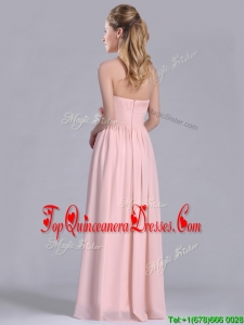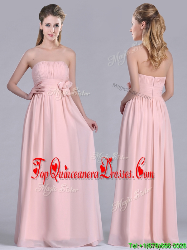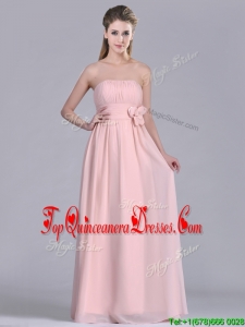 Modern Chiffon Handcrafted Flowers Long Dama Dress in Baby Pink