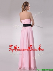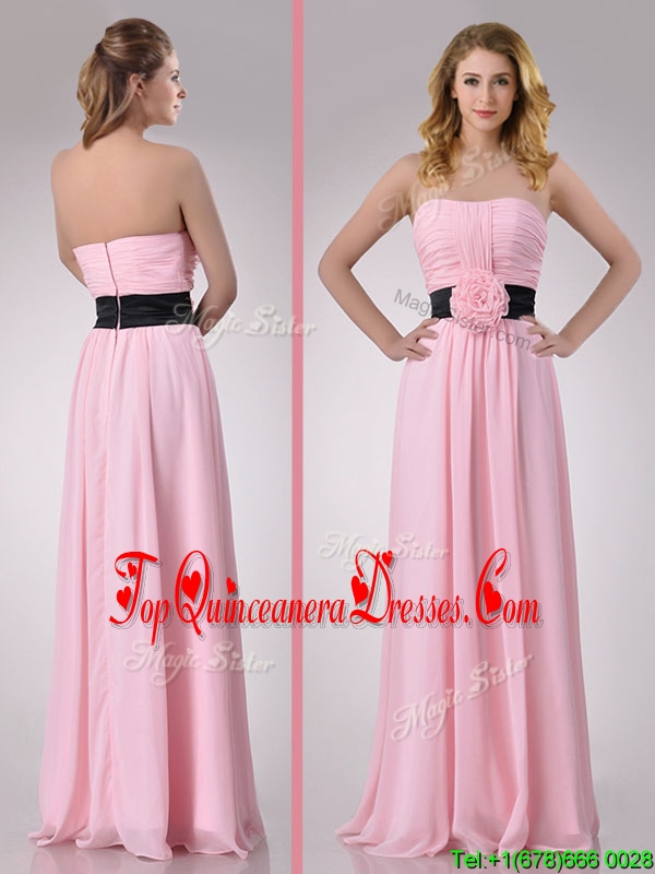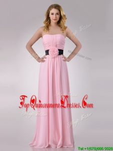 Modern Empire Chiffon Pink Long Dama Dress with Hand Crafted Flower