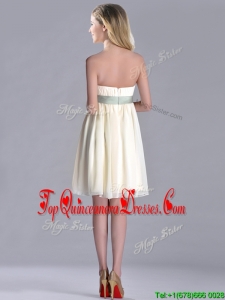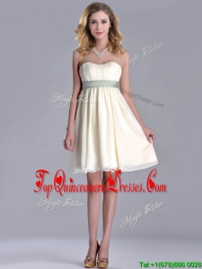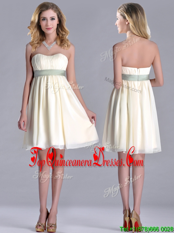Modern Empire Light Yellow Dama Dress with Ruching and Belt