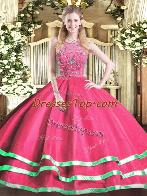 Modern Floor Length Ball Gowns Sleeveless Hot Pink Vestidos de Quinceanera Zipper