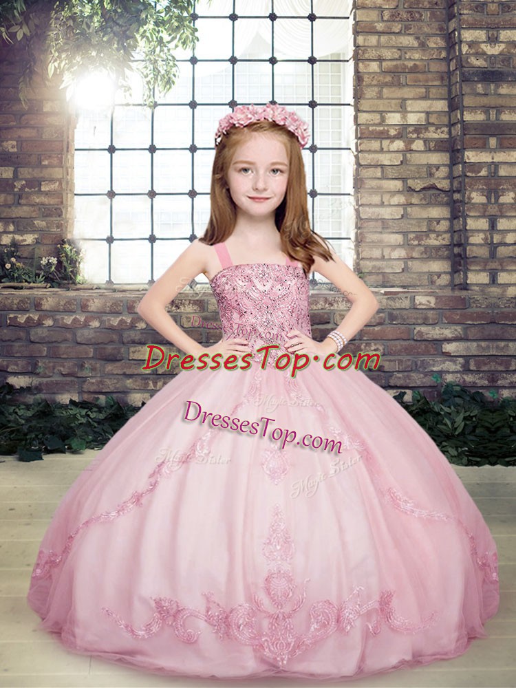 Modern Floor Length Ball Gowns Sleeveless Lilac Child Pageant Dress Lace Up