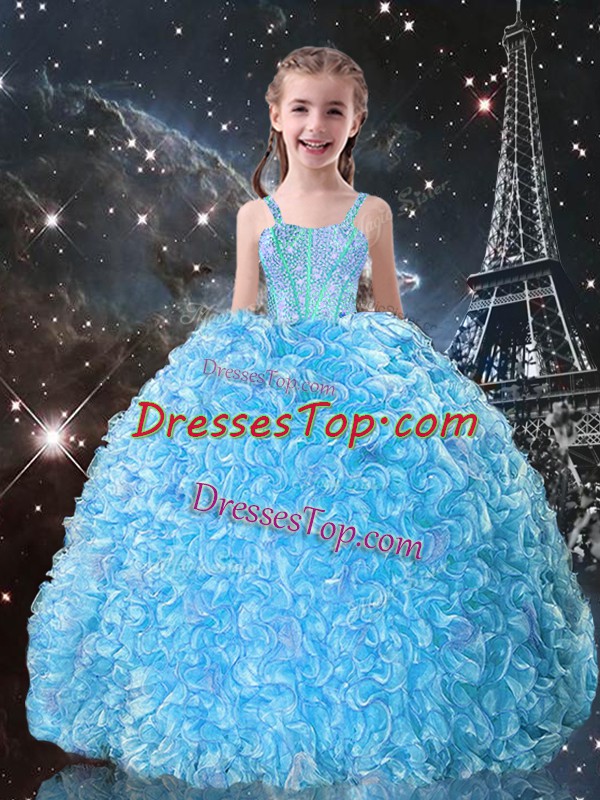 Modern Floor Length Lace Up Kids Formal Wear Aqua Blue for Quinceanera and Wedding Party with Beading and Ruffles