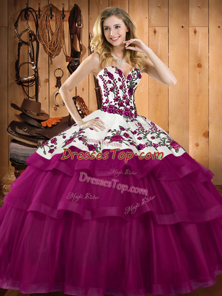 Modern Fuchsia Sweetheart Lace Up Embroidery Sweet 16 Dresses Sleeveless
