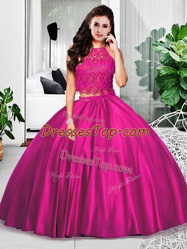Modern Fuchsia Taffeta Zipper Sweet 16 Dresses Sleeveless Floor Length Lace and Ruching