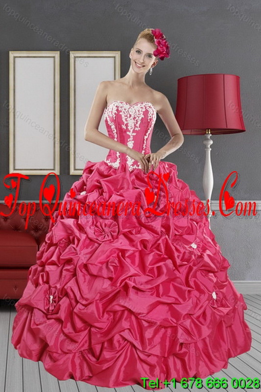 Modern Hot Pink Dresses for Quince with Pick Ups and Appliques