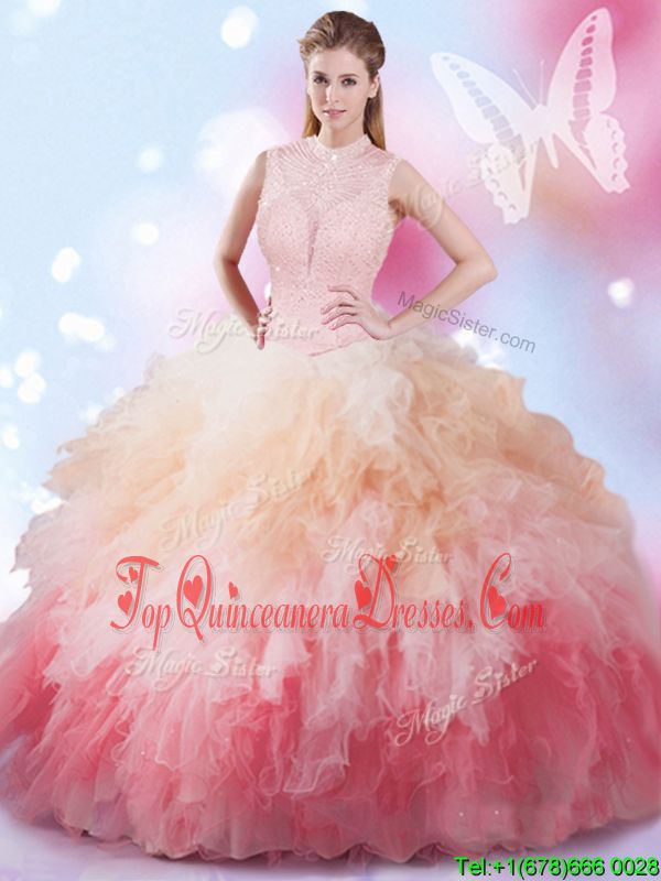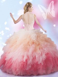 Modern Lavender Sweet 16 Quinceanera Dress Tulle Brush Train Sleeveless Beading and Ruffles