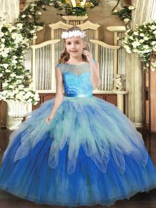 Modern Multi-color Backless Kids Pageant Dress Lace and Ruffles Sleeveless Floor Length