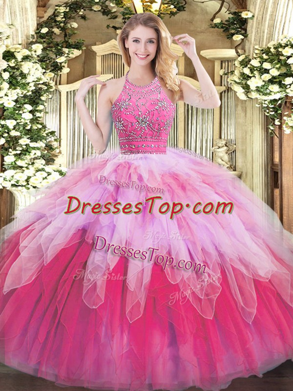 Modern Multi-color Sleeveless Beading and Ruffles Floor Length Quinceanera Gown