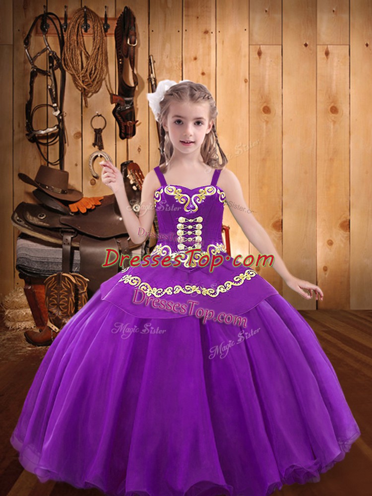 Modern Sleeveless Floor Length Ruffles Lace Up Little Girl Pageant Gowns with Eggplant Purple