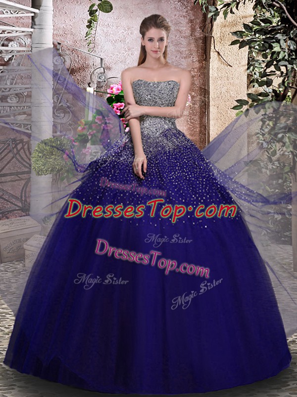 Modern Sleeveless Lace Up Floor Length Beading 15 Quinceanera Dress