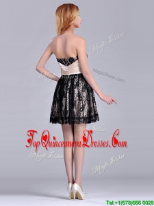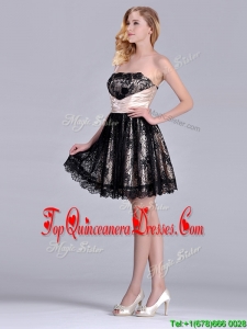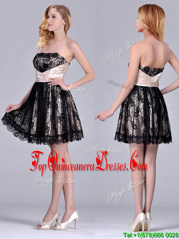 Modern Strapless Black Short Dama Dress with Lace and Belt