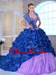 Modern Sweetheart Brush Train Pick Ups and Appliques Quinceanera Dresses