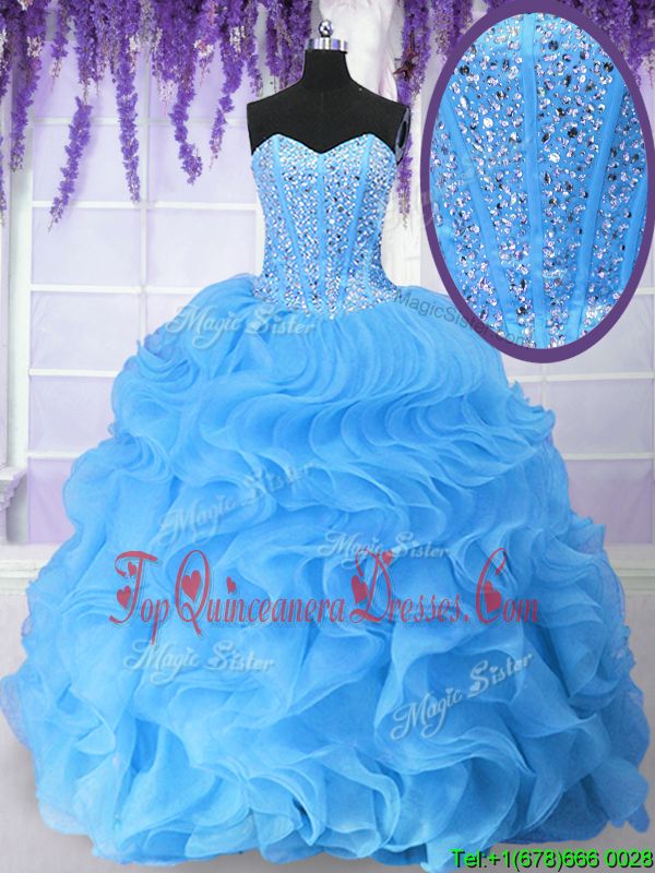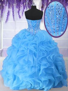 Modern Sweetheart Sleeveless Organza Quince Ball Gowns Beading and Ruffles Lace Up