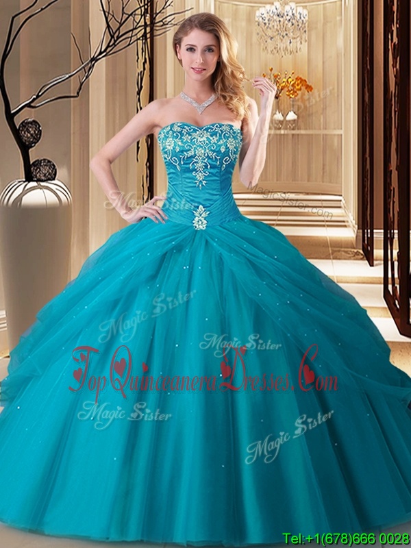 Modern Teal Sweetheart Neckline Embroidery Quinceanera Gown Sleeveless Lace Up