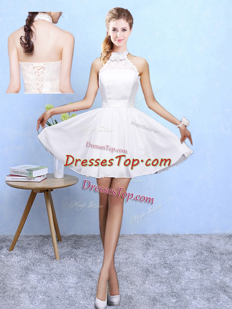 Modern White Halter Top Neckline Lace Damas Dress Sleeveless Lace Up