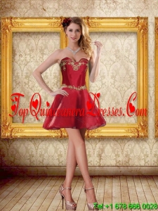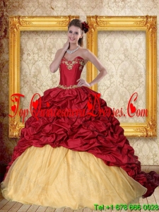 Modest 2015 Sweetheart Wine Red Brush Train Quinceanera Dress with Beading