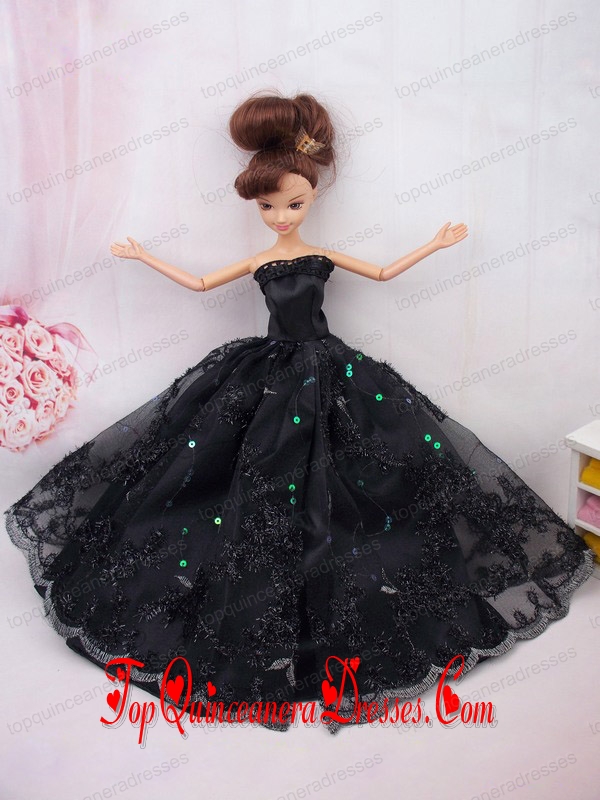 Modest Ball Gown Lace Black Party Clothes Barbie Doll Dress