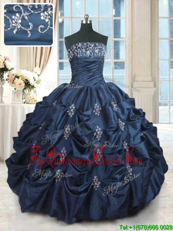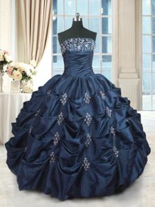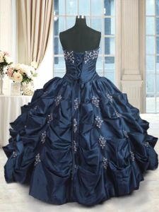 Modest Beading and Pick Ups Sweet 16 Quinceanera Dress Navy Blue Lace Up Sleeveless Floor Length