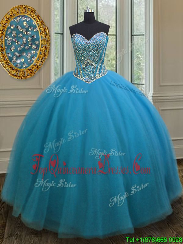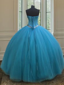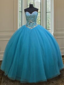 Modest Beading Ball Gown Prom Dress Lilac Lace Up Sleeveless Floor Length