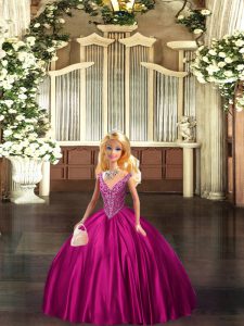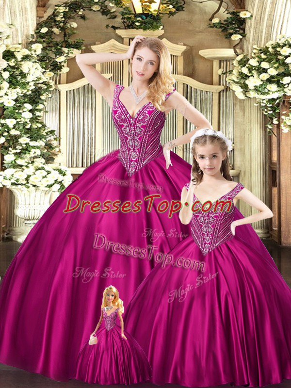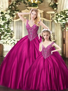 Modest Beading Sweet 16 Quinceanera Dress Fuchsia Lace Up Sleeveless Floor Length