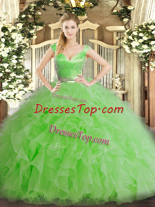 Modest Green Organza Zipper Quinceanera Gowns Sleeveless Floor Length Ruffles