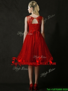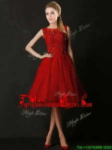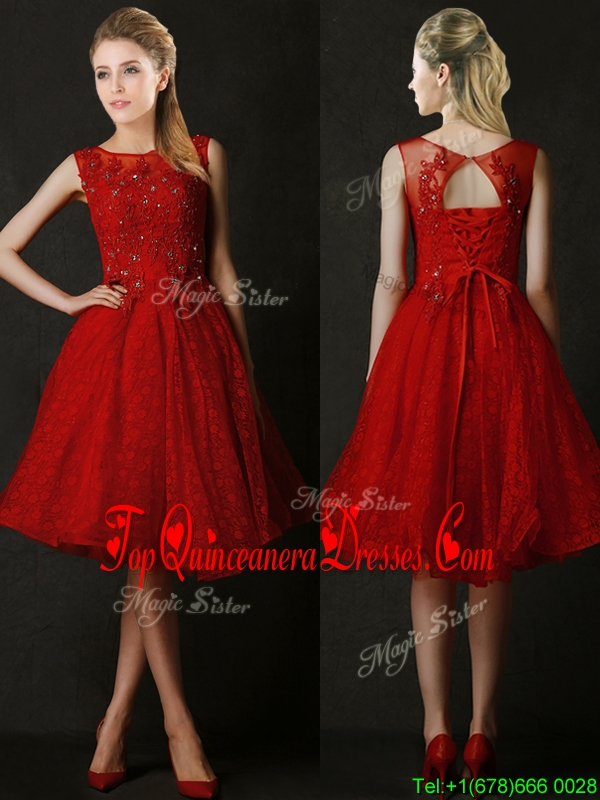 Modest Knee Length Red Damas Dress with Beading and Appliques