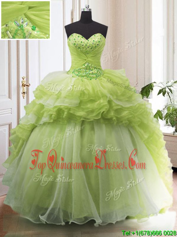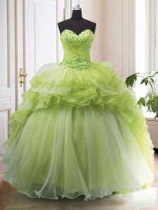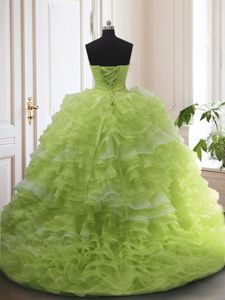 Modest Ruffled With Train Ball Gowns Sleeveless Yellow Green Quinceanera Dress Sweep Train Lace Up
