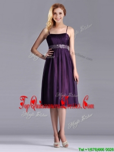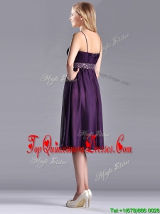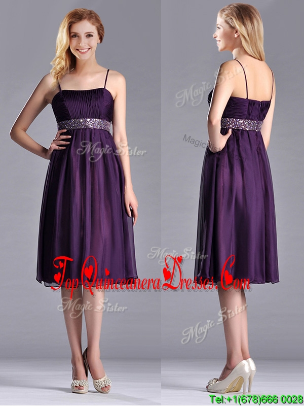 Modest Spaghetti Straps Beaded Chiffon Short Dama Dress in Purple