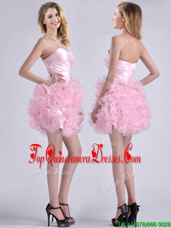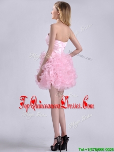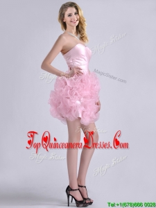 Modest Sweetheart Rolling Flowers Short Dama Dress in Baby Pin
