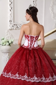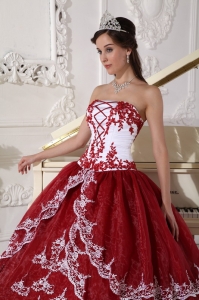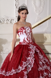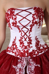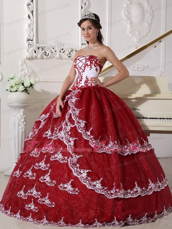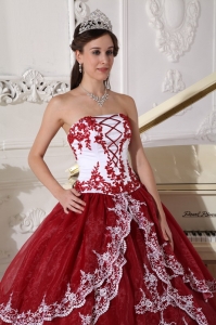 Modest Wine Red and White Quinceanera Gowns Appliques