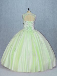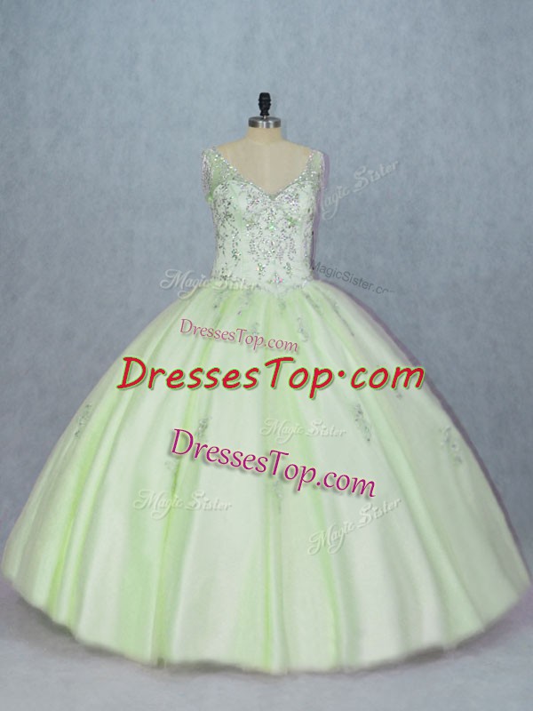 Modest Yellow Green Ball Gown Prom Dress V-neck Sleeveless Lace Up