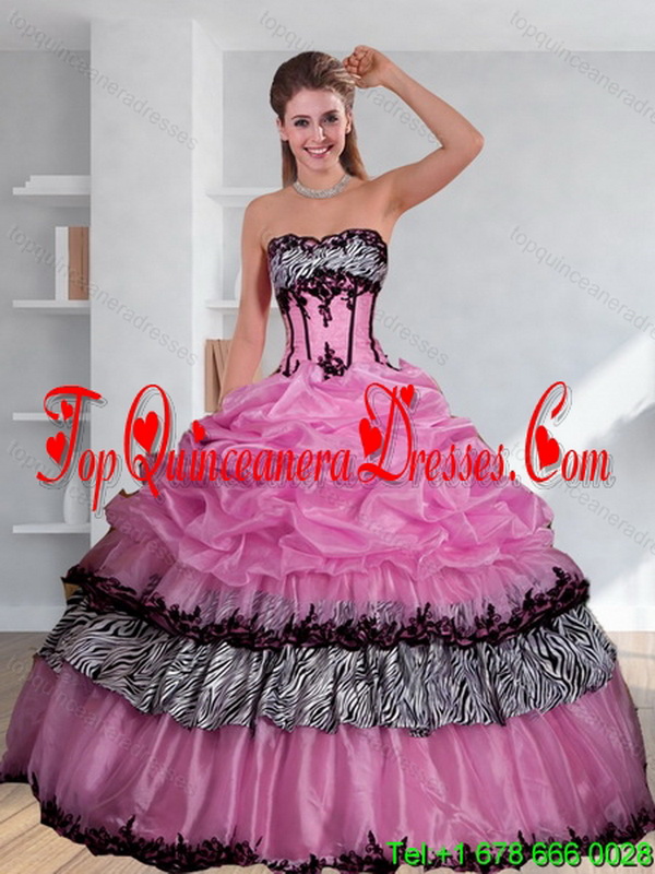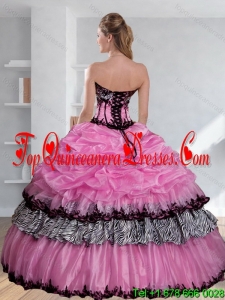 Modest Zebra Printed Strapless Quinceanera Dress with Pick Ups and Embroidery