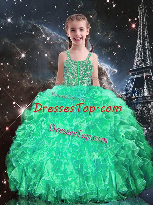 Most Popular Apple Green Sleeveless Beading and Ruffles Floor Length High School Pageant Dress