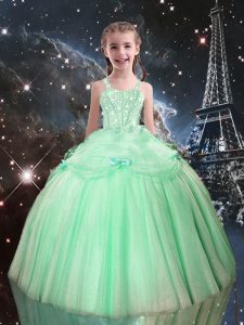 Most Popular Apple Green Sleeveless Beading Floor Length Quinceanera Dress