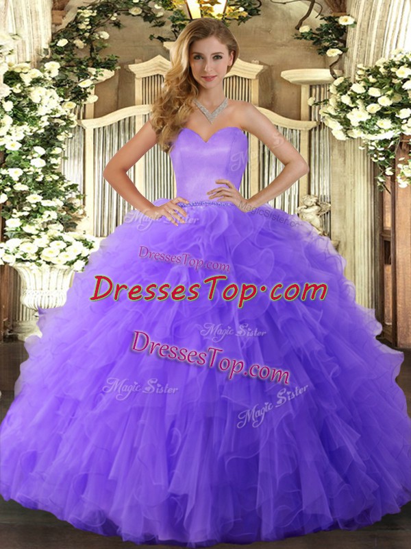 Most Popular Ball Gowns Quince Ball Gowns Lavender Sweetheart Tulle Sleeveless Floor Length Lace Up