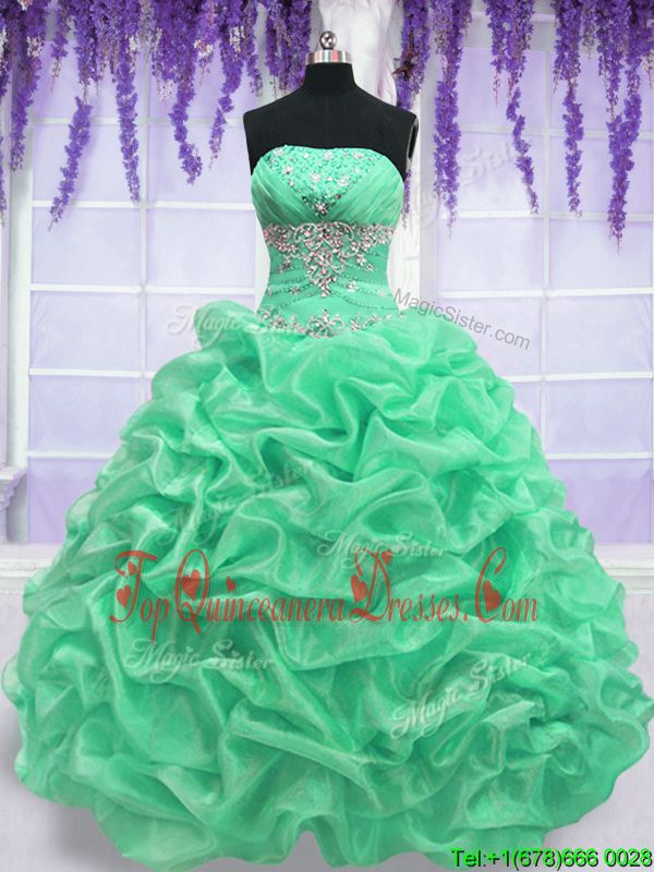 Most Popular Beading 15 Quinceanera Dress Apple Green Lace Up Sleeveless Floor Length