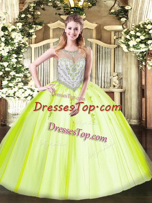 Most Popular Beading and Appliques Vestidos de Quinceanera Yellow Green Zipper Sleeveless Floor Length