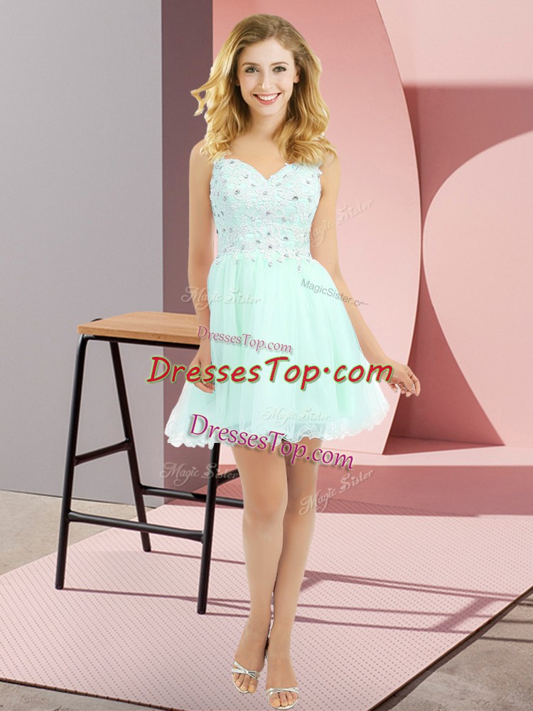Most Popular Beading and Lace Dama Dress for Quinceanera Apple Green Side Zipper Sleeveless
