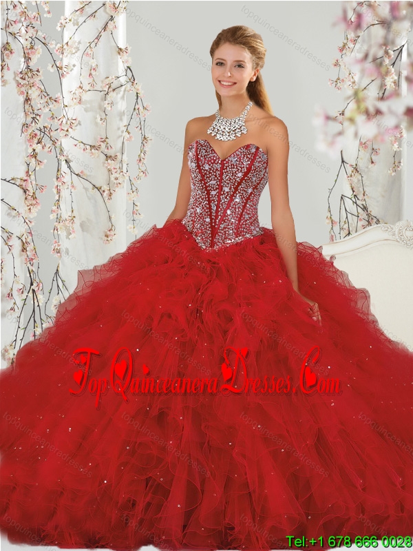 Most Popular Detachable Beading and Ruffles Red Dresses for Quinceanera Dress Skirts
