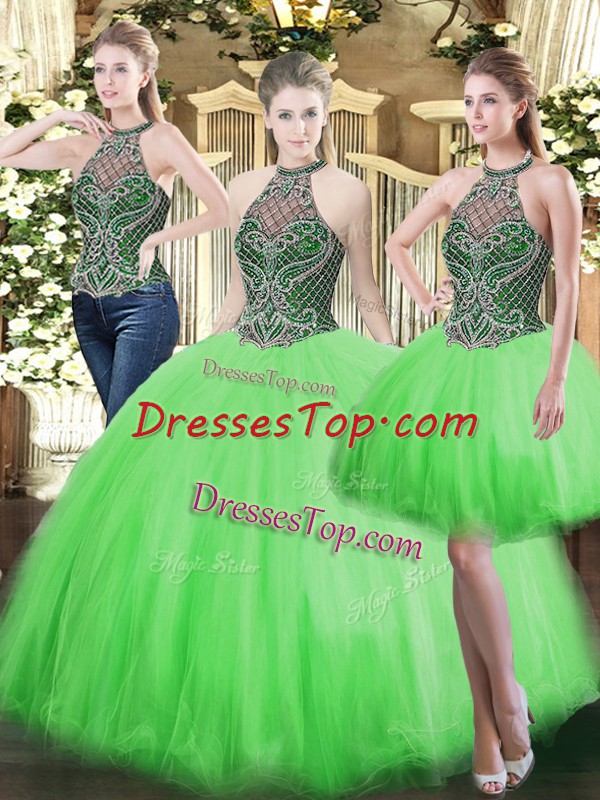 Most Popular Floor Length Lace Up 15th Birthday Dress for Military Ball and Sweet 16 and Quinceanera with Beading