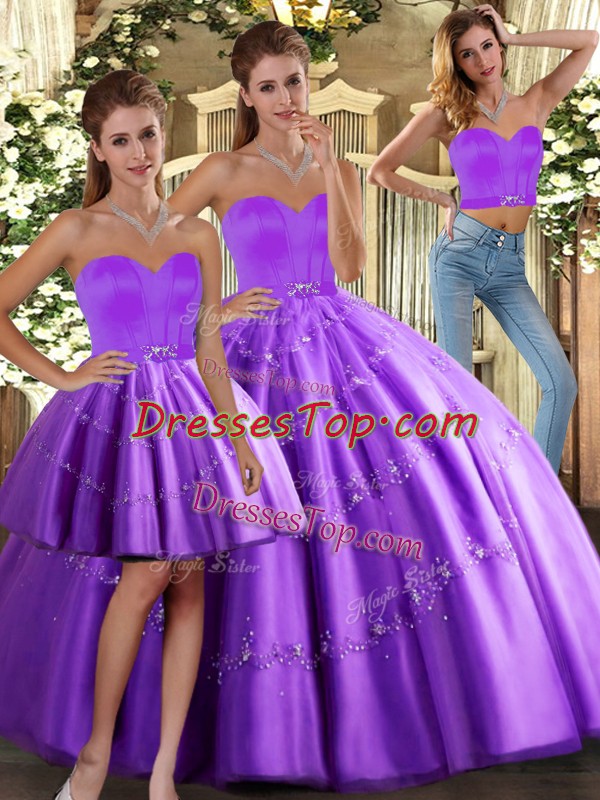 Most Popular Floor Length Purple 15th Birthday Dress Tulle Sleeveless Beading