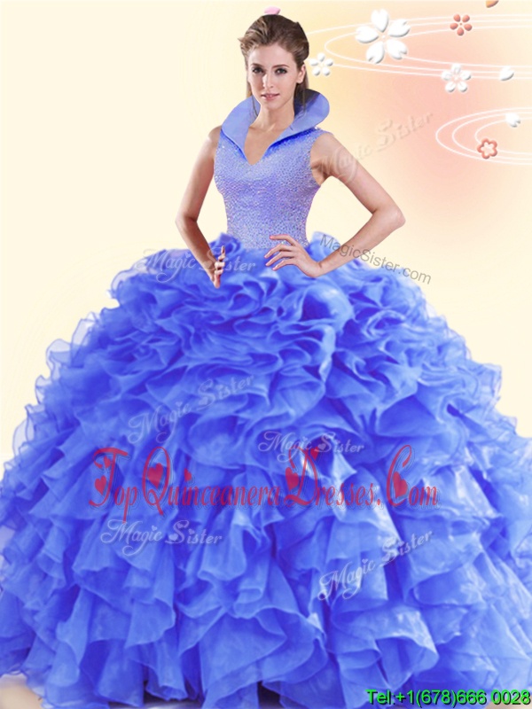 Most Popular Floor Length Purple Quinceanera Gown High-neck Sleeveless Backless