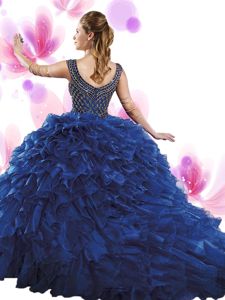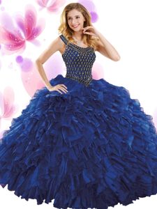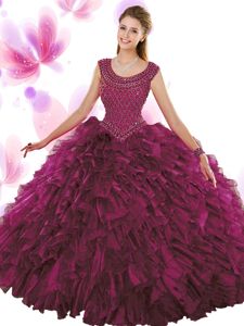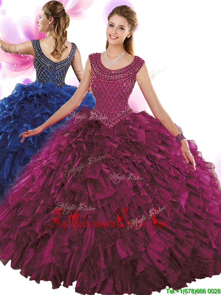 Most Popular Fuchsia Scoop Neckline Beading and Ruffles Quinceanera Dress Sleeveless Zipper