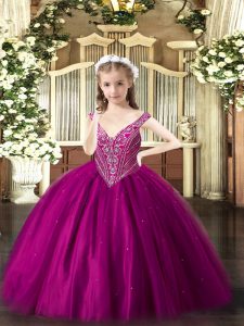 Most Popular Fuchsia Sleeveless Beading Floor Length Little Girls Pageant Dress