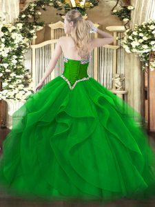 Most Popular Green Tulle Lace Up Vestidos de Quinceanera Sleeveless Floor Length Beading and Ruffles